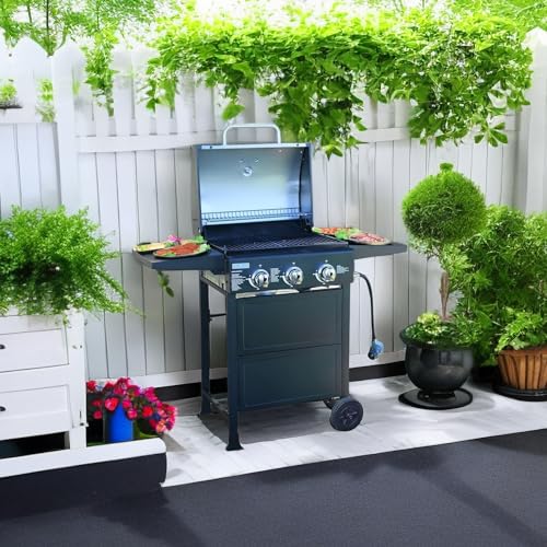 ChuMaste grill propane 3 burner gas grill, Propane grill, bbq grill with thermometer, gas grill outdoor for small gatherings, 30000 BTU barbecue grill with Foldable Rack.