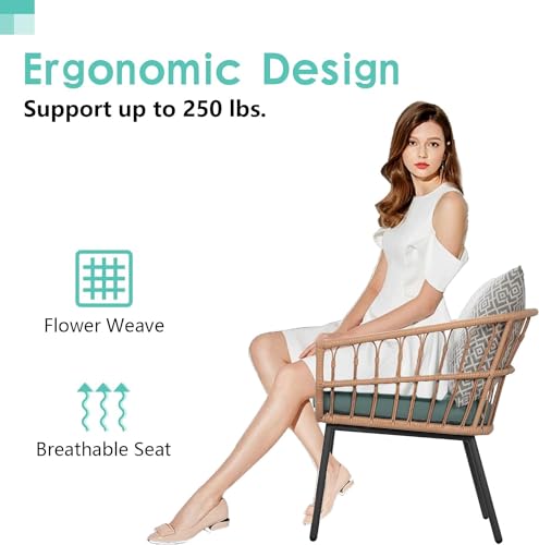 Exquisite Handwoven: Indulge in the art of craftsmanship with two varieties of beige faux rattan and PE wicker, meticulously handwoven for easy maintenance, fade resistance and water resistance. Weighing only 42 pounds, this lightweight bistro set is designed to endure all seasons and can accommodate up to 250 pounds.