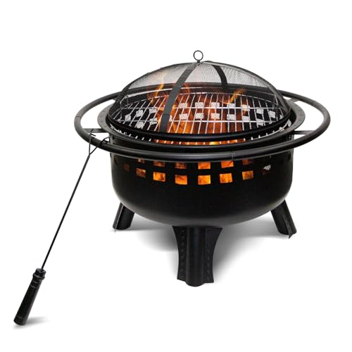 32 Inch Fire Pit with Grill,Outdoor Wood Burning with Fire Poker,for Patio,Backyard,Black