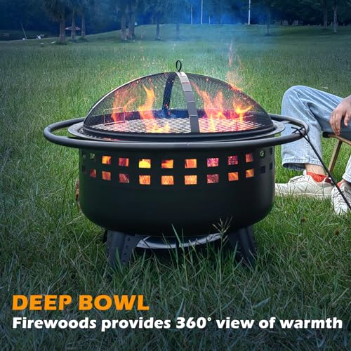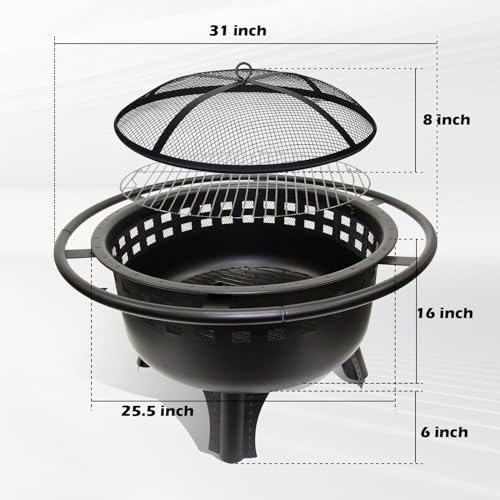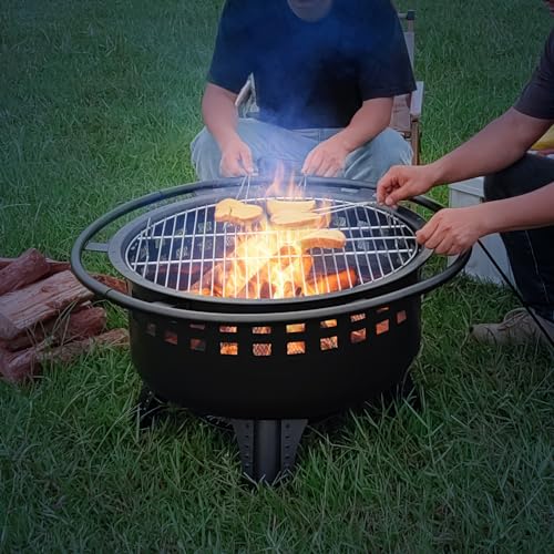 🔥MULTIPURPOSE OUTDOOR FIRE PIT: This 32” outdoor fire pit has a large grilling area for multiple people to have a bonfire on the patio, in the yard or in the garden.