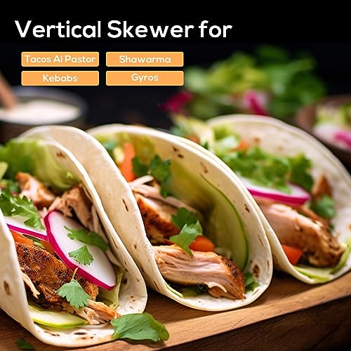 ✔️Elevate Your Culinary Creations to Restaurant-Level: Utilize our vertical skewer rack to effortlessly craft perfect delights like Tacos Al Pastor, Shawarma, Gyros, and more in the comfort of your home. Say goodbye to the need for a rotating grill; this tool allows you to showcase restaurant-quality dishes, delivering the delectable taste of premium meat delicacies.