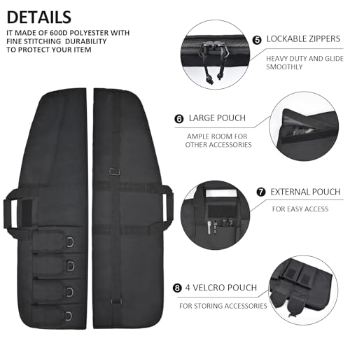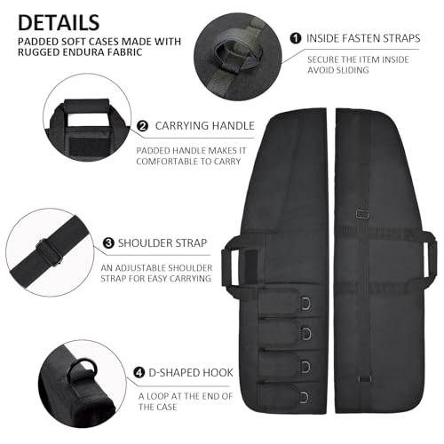 【Features】The soft rifle bag is made of high-quality water-resistant material, with an adjustable shoulder strap and a maintain. Velcro Fasten Straps Inside. Extra 4 pockets and 1 large pocket for accessories.
