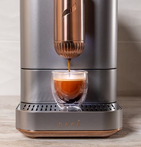 Make delicious Espresso, Americano, Lungo, or dispense hot water with the Cafe Affetto Automatic Espresso Machine. With a single press of a button and in not up to 90 seconds, this automatic espresso machine dispenses your desired brew. Customize drink preferences by volume and strength, with a smart espresso machine that syncs with the SmartHQ app. Beans remain fresh within the built-in bean hopper that holds over 6 ounces. To make sure even extraction for a balanced tasting cup, beans are pre-infused with low pressure to gently bloom optimal flavor profiles and regularly increased to 20 bars of high rated pump pressure. You’ll be able to keep an eye on your grind size with 5 levels ranging from coarsest to finest for ideal taste and aroma extraction. With a removable water reservoir and adjustable dispensing spout, cleaning and the use of your espresso machine is easier than ever.