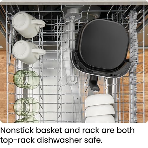 SIMPLE CLEAN-UP: The 4-quart nonstick basket and rack are both dishwasher safe, making clean-up quick and easy. The stylish matte-grey finish is timeless and easy to wipe clean with a damp cloth.