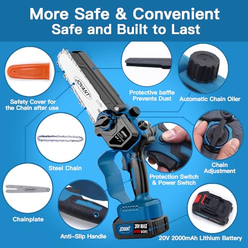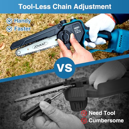 【ONE-HAND OPERATED】: Chainsaw battery powered weighs only 2.59 lbs, bid farewell to the cord chain saw, experience the convenience of electric saw. Suitable for small or awkward spaces