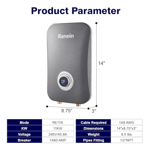 IMPORTANT: In order to install the 11 kW instant electric water heater tankless, a 240 voltage, 60 AMP circuit breaker size is required. Please check to make sure your breaker panel meets these specifications. Suitable 2 point of use the bathroom.