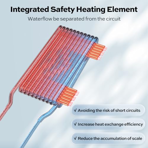 Smart Operation:Auto adjusting energy consumption basing on income water temperature and flow, ensuring maximum efficiency, continuous stable temperature and optimal power usage. Digital temperature display allowing adjustment in 1° increment from 86°F to 140°F. Heating element separated from water tube significantly reducing scale, corrosion and mineral buildup on the element, achieving better performance and low maintenance.