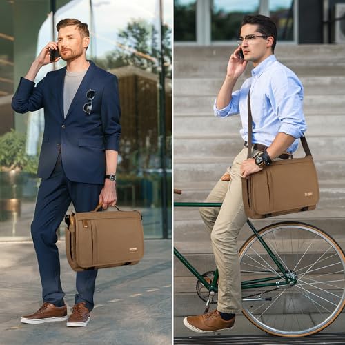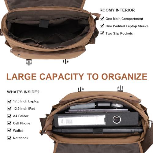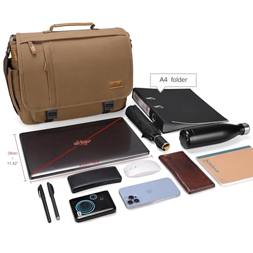 ESTARER Messenger Bag 17-17.3 Inch, Men’s Computer Bag Water-resistant Canvas, Laptop Shoulder Bag for Travel Work College, Brown