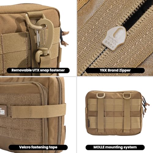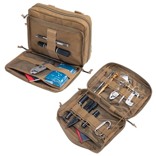 DURABLE MATERIAL: The molle admin pouch mades of tough, durable and lightweight Cordura nylon, high-quality YKK zippers and fasteners, scratch-resistant and wear- Resistant, not easy to wear and fade. Molle tool pouch utilized the laser cut front + loop material Molle platform bring other accessories & morale patches as desired.