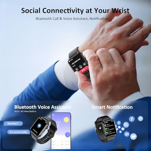 👍 【Buletooth Hands-Free Calls & AI Voice Assistant】Fitness Smartwatches for men women come with HiFi stereo speakers and a microphone will helps you from hands-free multitasking. Connect via Bluetooth to answer or make calls directly, Use the ‘Da Fit’ app to store contacts and receive Texts and instant app notifications for calls and messages from WhatsApp, Facebook, Instagram, and more. Interact effortlessly with the AI voice assistant for tasks like checking weather, making calls, or setting alarms.