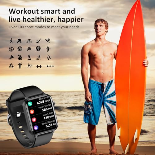 👍 【More Smart Reminders, IP68 Waterproof】Keep track with Blackview smartwatch reminders. Avoid prolonged inaction with sedentary alerts and stay hydrated with water reminders. Track menstrual cycles for women’s health insights. Never miss appointments with the alarm clock. Enjoy music and camera controls, games, weather forecasts, and more—it’s an excellent assistant for daily use and go back and forth. It connects seamlessly with Android 6.0+ and iOS 9.0+ smartphones. IP68 waterproof rated for daily wear (***NOTE: Not suitable for sauna, hot water, swimming, or diving).