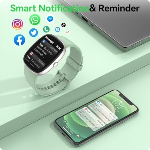 ⌚1.69″ Large HD Color Touchscreen: Featuring a 1.69-inch HD display with a resolution of 240*284, the fitness tracker provides perfect color saturation and smooth operation. With its slim design weighing only 1.3 ounces and an improved sweat-resistant liquid silicone strap, You’ll wear the digital watch all day long and enjoy ordinary comfort.