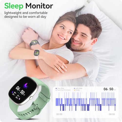 💓Health Monitor & Sleep Watch: The fitness watch can monitor your blood oxygen levels, heart rate, and track your sleep patterns to gain valuable insights. The watch records deep sleep, light sleep, and awake duration. providing a comprehensive analysis of your sleep quality that can assist you stay active and healthy.