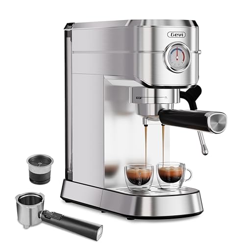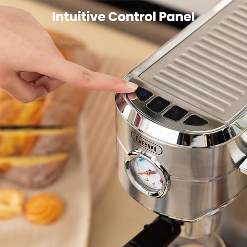 𝐄𝐧𝐣𝐨𝐲 𝐃𝐞𝐥𝐢𝐜𝐢𝐨𝐮𝐬 𝐄𝐬𝐩𝐫𝐞𝐬𝐬𝐨 𝐂𝐨𝐟𝐟𝐞𝐞 𝐃𝐫𝐢𝐧𝐤𝐬 – Equipped with a 20-bar pump, NTC temperature keep watch over, pre-infusion feature, and a pressure gauge, the Gevi stainless steel espresso coffee machines with a milk frother permits you to craft a range of café-quality beverages. From Mocha to Macchiato, Espresso to Americano, this expresso machine is not just ideal for home or office use but also makes a perfect gift for father, friends, and loved ones.