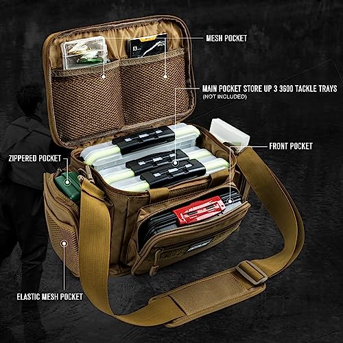 Goture Fishing Tackle Bag,Soft Side Water-Resistant Cross Body Sling Fishing Bag,Waist Pack Fishing Gear Bag Saltwater Freshwater,Tactical Bag Outdoor,Fishing Gifts for Men,Store 3 3600 Tackle Boxes