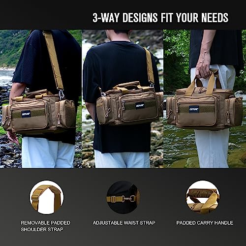 【Multiple Carrying Options】 This tackle bag comes equipped with both a shoulder strap and a waist belt, giving you the flexibility to use it as a waist pack, single-shoulder bag, sling bag, or handbag. The sturdy buckle on the shoulder strap allows for adjustable length according to your height, ensuring a comfortable and safe fit. The convenient deal with strap makes it effortless to carry by hand.
