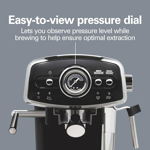 Hamilton Beach Slide & Lock Espresso Machine With Milk Frother Steam Wand For Cappuccino & Latte, 15 Bar Pump and Two Spouts, Removable Reservoir, Compact, Retro Design, Black (40730)
