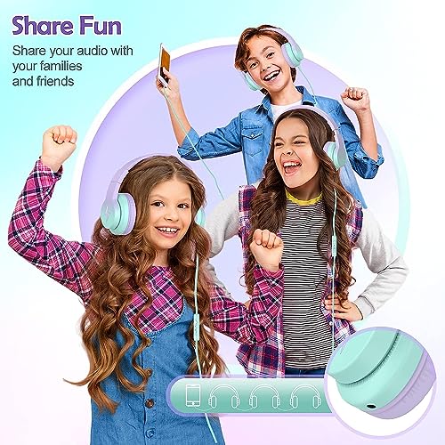 Kids Headphones, Wired Headphones for Kids Over Ear with Microphone, 85/94dB Volume Limiter Headphones for Girls Boys with Sharing Jack, Foldable Headphones for Online Study,Gradient Purple