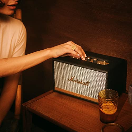 Acton II is also compact, but its sound is little short of large. This dynamic compact speaker features three dedicated class D amplifiers that power its dual tweeters and subwoofer, for a sound that is little short of large. It produces a well balanced, powerful audio experience, yet can fit in the tiniest of spaces. With Bluetooth 5.0 technology you’ll play your music in glorious, stereo sound with no wires required.Classic Marshall details such as a textured vinyl covering, salt & pepper fret and the iconic script logo adorn Acton II’s sturdy wooden frame. Located on the front of the speaker is a brass plate, proudly etched with the establishment date of 1962 – a subtle nod to the brand’s heritage and over 50 years of loud