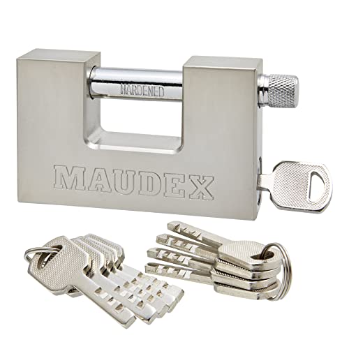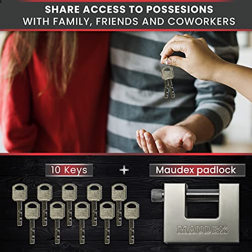 Maudex® MDP/90 Heavy Duty Lock with 10 Keys for Outdoor Use [Nickel Plated Finish] – [Anti Pick, Anti Drill Cylinder] – Ideal Storage Unit and Shipping Container Lock