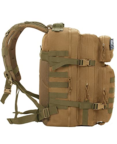 Tactical backpack for men,it has the durable water-resistant 600 density fabric,this tactical bag size is 19.6″H x 11.8″L x 11.8″W,total capacity:45 liter.