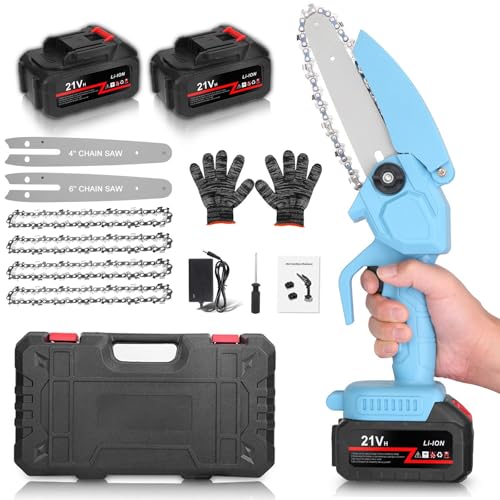 [PORTABLE AND LIGHTWEIGHT DESIGN] – Our mini chainsaw comes with a small carrying case to store all accessories. This mini cordless chainsaw is very compact and convenient, easy to assemble, just use the tool to adjust the chain tension and insert the battery to use. 6-inch & 4-inch chainsaw weighs approximately 4.23 pounds (including battery) and is ideal for seniors and women. It is also suitable for right and left-handed users.