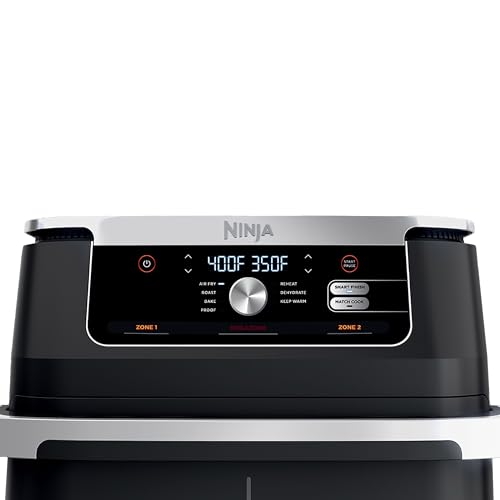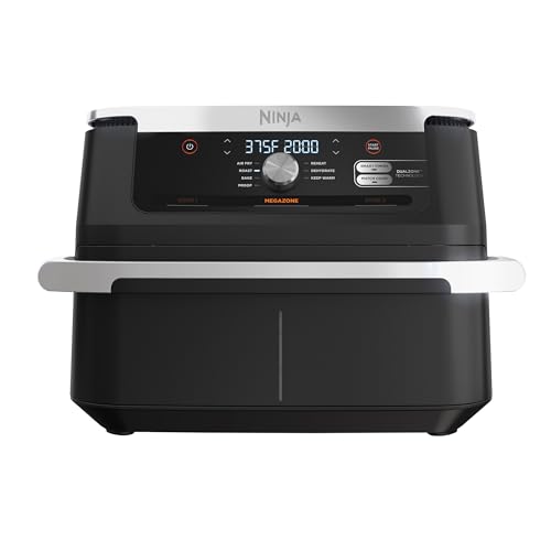Meet the Ninja Foodi DualZone FlexBasket Air Fryer with 11-qt MegaZone. With the MegaZone, you can now cook larger proteins or entire meals that feed your whole family all in one basket. Insert the basket divider to cook with two 5.5 qt baskets or remove it to cook in 1 MegaZone for full 11-qt capacity. Eliminate back-to-back cooking with Dual Zone Technology. Use Smart Finish to cook 2 foods, 2 ways that finish cooking at the same time, or sync the settings across both zones with Match Cook. Plus, it features 7 cooking functions (air fry, air broil, roast, bake, proof, reheat, dehydrate) so no matter what you’re craving, you can make it all in this 11 qt air fryer. Then, when you’re done cooking, cleanup is a breeze with nonstick and dishwasher safe crisper plates and basket.