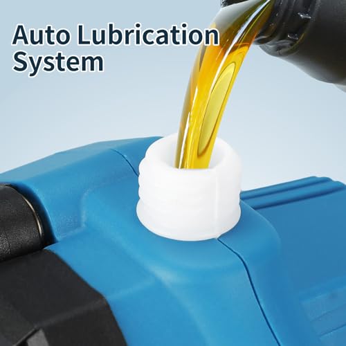 Auto Oiler System: This mini chainsaw cordless is equipped with an automatic chain lubrication system. Press the bulb to supply oil to the saw blade and chain for optimal working conditions, reduce wear and make cutting smoother. (Use universal saw chain oil)