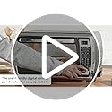 Precaution: Do not touch hot surfaces. Always use oven mitts when handling hot materials and allow metal parts to cool before cleaning. Allow the unit to cool thoroughly before putting in or taking off parts. Always use the oven handles when moving the unit. Perfect for large families, this countertop oven from Oster comes equipped with convection technology, which means it distributes heat quickly and evenly for thorough cooking and excellent results. The oven provides a large interior that can accommodate a frozen pizza, a whole chicken, a casserole, or even a pan of crescent rolls or chocolate-chip cookies. Two rack positions allow for customizing the space, especially helpful when cooking a tall roast. Furthermore, the sleek, modern-looking unit features a stainless finish frame and a user-friendly manual/digital control panel for convenient operation. Choose from a variety of cooking functions, including Bake, Convection Bake, Broil, Toast, Pizza, Defrost and Warm. Adjust time and temperature using one touch controls. Other highlights include a see-through door that allows for checking on food at a glance, an optional interior light, an easy-to-clean interior, and an external removable crumb tray. A durable baking pan comes included. Black housing with chrome accents.