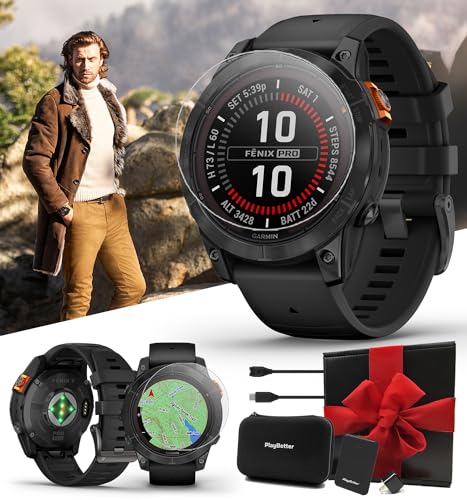 [GARMIN FENIX 7X PRO GIFT BOX BUNDLE] – Garmin fenix 7X Pro Multisport GPS Watch, PlayBetter HD Screen Protectors, Portable Brick Charger, Wall USB Charging Adapter, and Protective Hard Case | Prepacked in Black Gift Box with Red Bow
