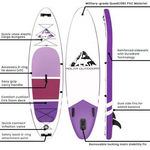 Polar Outdoors Inflatable Stand Up Paddle Boards with Premium SUP Paddle Board Accessories, Wide Stable Design, Non-Slip Comfort Deck for Youth & Adults