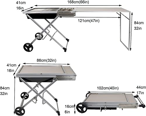 [Product Size] Stable and portable. Multi-function grill (including independent carbon tank, gas stove). Product unfolded size: 168*41*84cm (66*32*16 inches), folded size: 102*11*16cm (40*47*6in), free barbecue net, carbon clip, carbon slot clip, barbecue clip, anytime, anywhere The ultimate picnic experience!