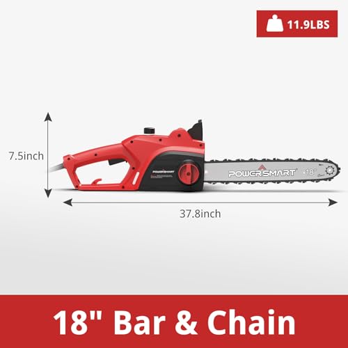 18 INCH CHAIN: This chainsaw includes a chain that requires minimal upkeep and provides a consistently even cut that remains sharp for longer time.