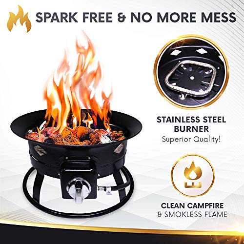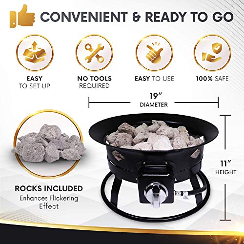 Project One Portable Outdoor Propane Fire Pit with Cover, Carry Kit, & Lava Rocks, 19-Inch Diameter 58,000 BTU, Diamond Pattern