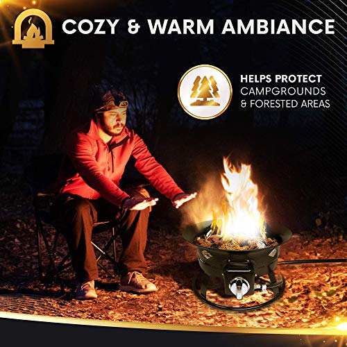 PROPANE FIRE PIT: Project One 19Inch Propane Fire pit offers a clean and realistic campfire without any hassle. No more preparing your wood, just plug in to your Propane tank and Fire up! Project One Propane Fire pit is great for Camping trips, RV Traveling, Tailgating, Patio, and all of your outdoor family gatherings.