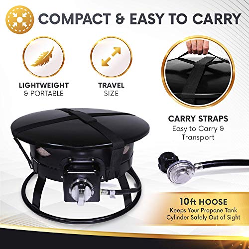 PORTABLE & EASY CARRY: Propane Fire pit is Lightweight and portable. Set up in minutes with no tools required. The Project One Propane fire Pit, delivers a clean smoke flame which will keep you cozy and warm in any weather. The Fire pit includes a Carrying belt so you can take it anywhere you want, Measuring L19″ W19″ H11″ with a total output of 58,000 BTU per Hour.