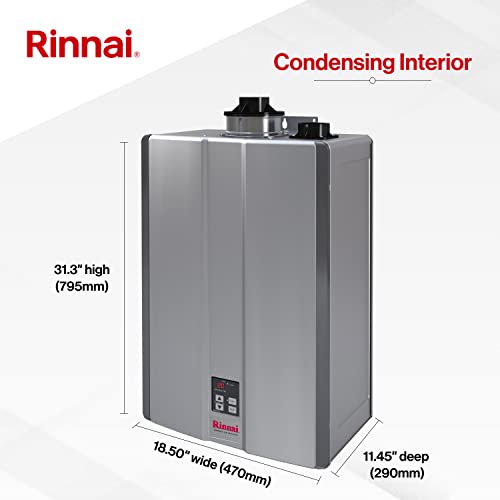 Never Run Out of Hot Water with this Compact Tankless Gas Water Heater: This indoor condensing tankless hot water heater from Rinnai is only the size of a small suitcase, but provides up to 11 GPM (7 fixtures at once)