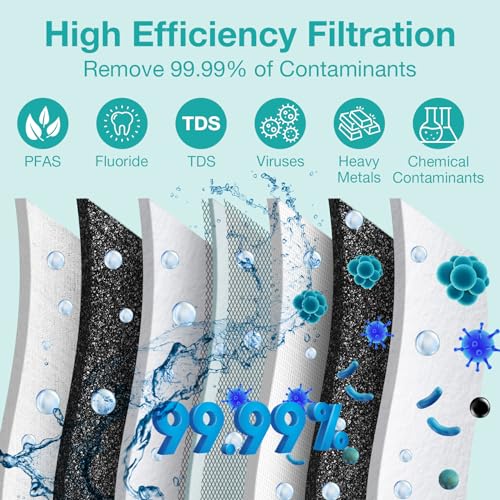 💧𝐔𝐩𝐠𝐫𝐚𝐝𝐞𝐝 𝟕-𝐬𝐭𝐚𝐠𝐞 𝐖𝐚𝐭𝐞𝐫 𝐅𝐢𝐥𝐭𝐫𝐚𝐭𝐢𝐨𝐧: The upgraded Q3-600 ro system implements a comprehensive upgrade over the old version Q3-600 system. It set a new filtration standard with ultra-high precision at 0.0001 microns. It removes 99.99% of impurities, including odors, sediments, bacteria, viruses, PFAS, fluoride, arsenic, salt, calcium, particles, iron, chlorides, chlorine, fluorosilicic acid, heavy metals, etc…