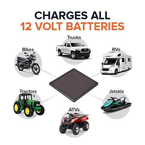 Charges all 12V batteries- Because our solar trickle charger is also a maintainer, it safely charges and maintains Wet, Gel, SLA, AGM and Deep Cycle batteries, etc using solar energy. Great to keep handy for emergency preparedness, keeping backup batteries charged, camping, motorhomes and even tents that are powered.