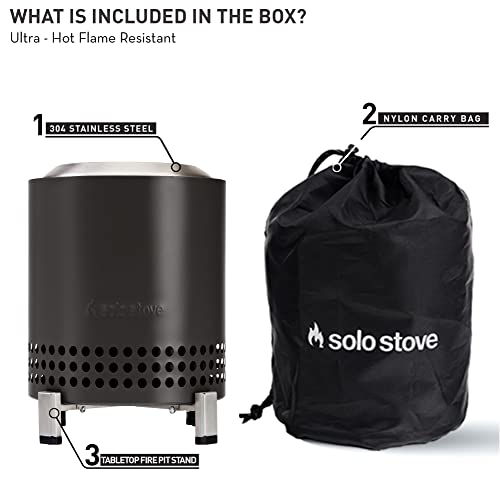 Solo Stove Mesa XL Tabletop Fire Pit with Stand | Low Smoke Outdoor Mini Fire for Urban & Suburbs | Fueled by Pellets or Wood, Stainless Steel, with Travel Bag, H: 8.6″ x D: 7″, 2.3 lbs, Ash