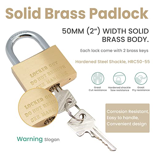 Unity Keyed Padlock WARNING logo, Solid Brass padlock 50mm (2″) for Self Storage, Storage unit, Sheds, Truck, Trailer (50 Pack)