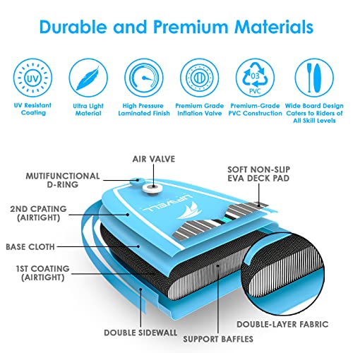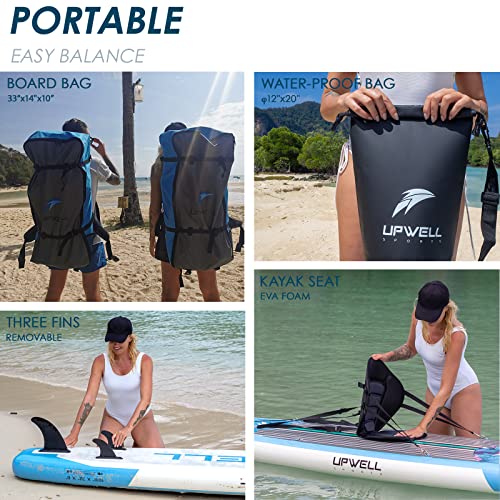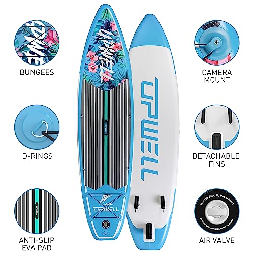 【PREMIUM MATERIALS】Our boards are made of the highest quality military grade materials. Ultralight double wall PVC is 25% lighter than other same size products. Meanwhile, this reinforced lightweight fabric creates a firmness, anti-corrosion, wear-resistance sup board which can be used for years. Soft non-slip EVA deck pad makes you feel comfortable while ensuring your stability and safety when you stand for a long time. UPWELL paddle board is your optimal choice for water sports.