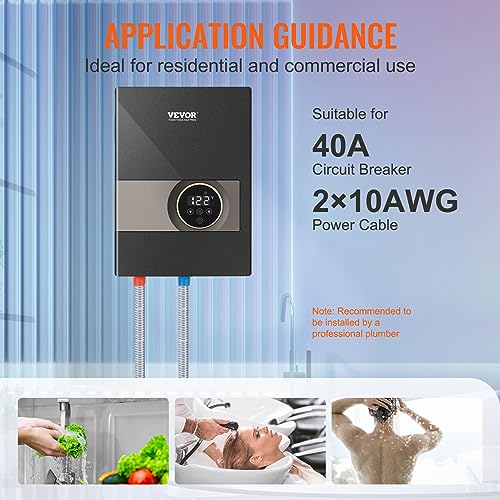 Know about Installation: Wall-mount design maximizes your living or working space. Our compact electric water heater comes with NPT 1/2” water inlet and outlet. Please note that 1 x 40A circuit breakers and 1 x 10AWG power cables are required for installation, and we recommend seeking professional assistance.