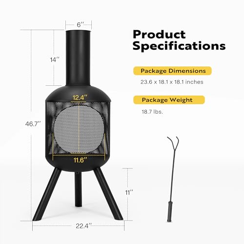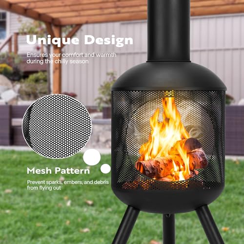 UNIQUE DESIGN – This 46-inch chiminea fire pit is designed with a unique chimney structure and mesh pattern, providing a one-of-a-kind experience of enjoying a fire and visual pleasure; It ensures your comfort and warmth during the chilly season