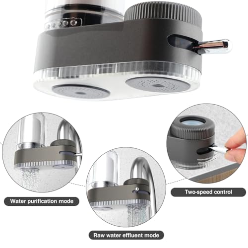 【2 WATER OUTLET MODES】Large water output, flexible pressurization. The faucet water filter has two water outlet modes, filtered water and regular water, you can switch easily, when washing dishes or watering flowers, you can use regular water to extend the service life of the filter, and use filtered water when cooking or washing vegetables.