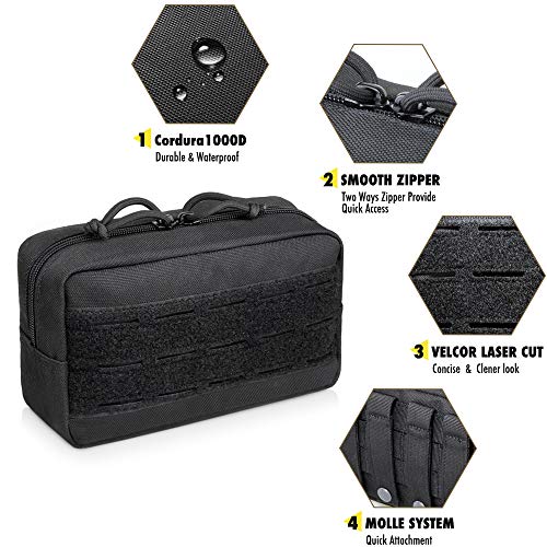 BUILT FOR TOUGH CONDITIONS: Tactical Molle Pouch is comprised of premium high-density 1000D nylon for extra durability and water resistance. Double-stitched at all stress points. Size: 9″*2.5″*5″(L*W*H).