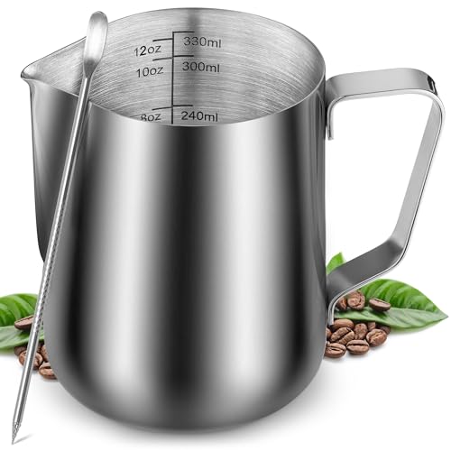 EASY TO READ MARKINGS: This milk frother cup is designed with oz and ml markings on the inside, making measuring liquids much more convenient. This milk frothing cup is made of food-grade and rust-resistant 304 stainless steel, so you’ll make perfectly portioned espresso or cappuccino cups for future years.